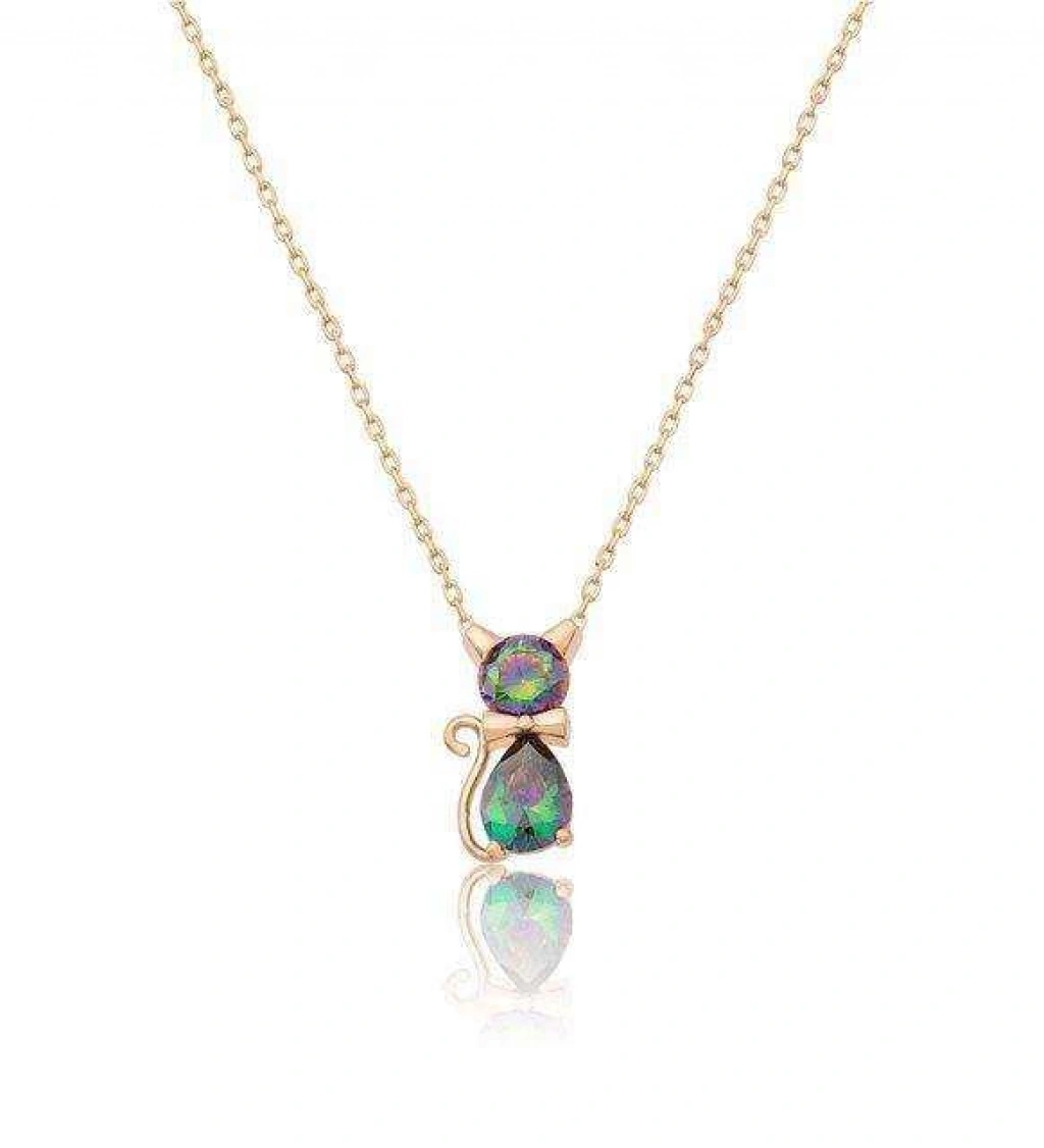 Mistik Topazlı Trend Gümüş Kedi Kolye - Rose