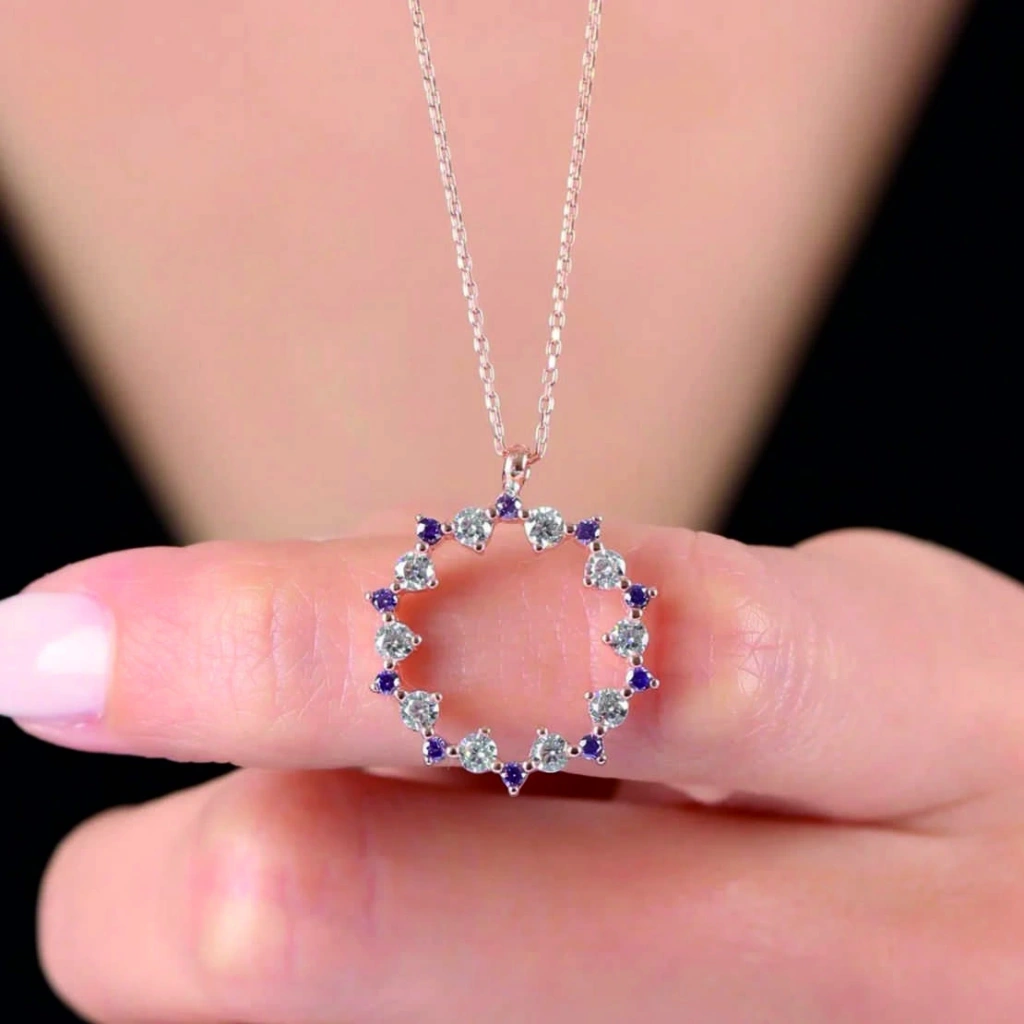 Pırlanta Montür Ametist Büyüsü Gümüş Kolye