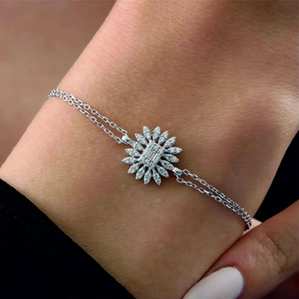 Pırlanta Montür Baget Güneşi Gümüş Bileklik
