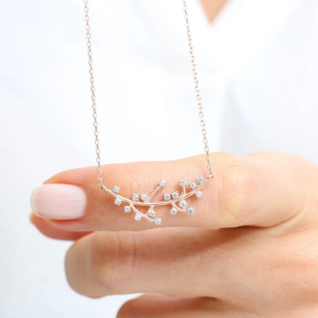 Pırlanta Montür Işıltılı Salkımlar Gümüş Kolye