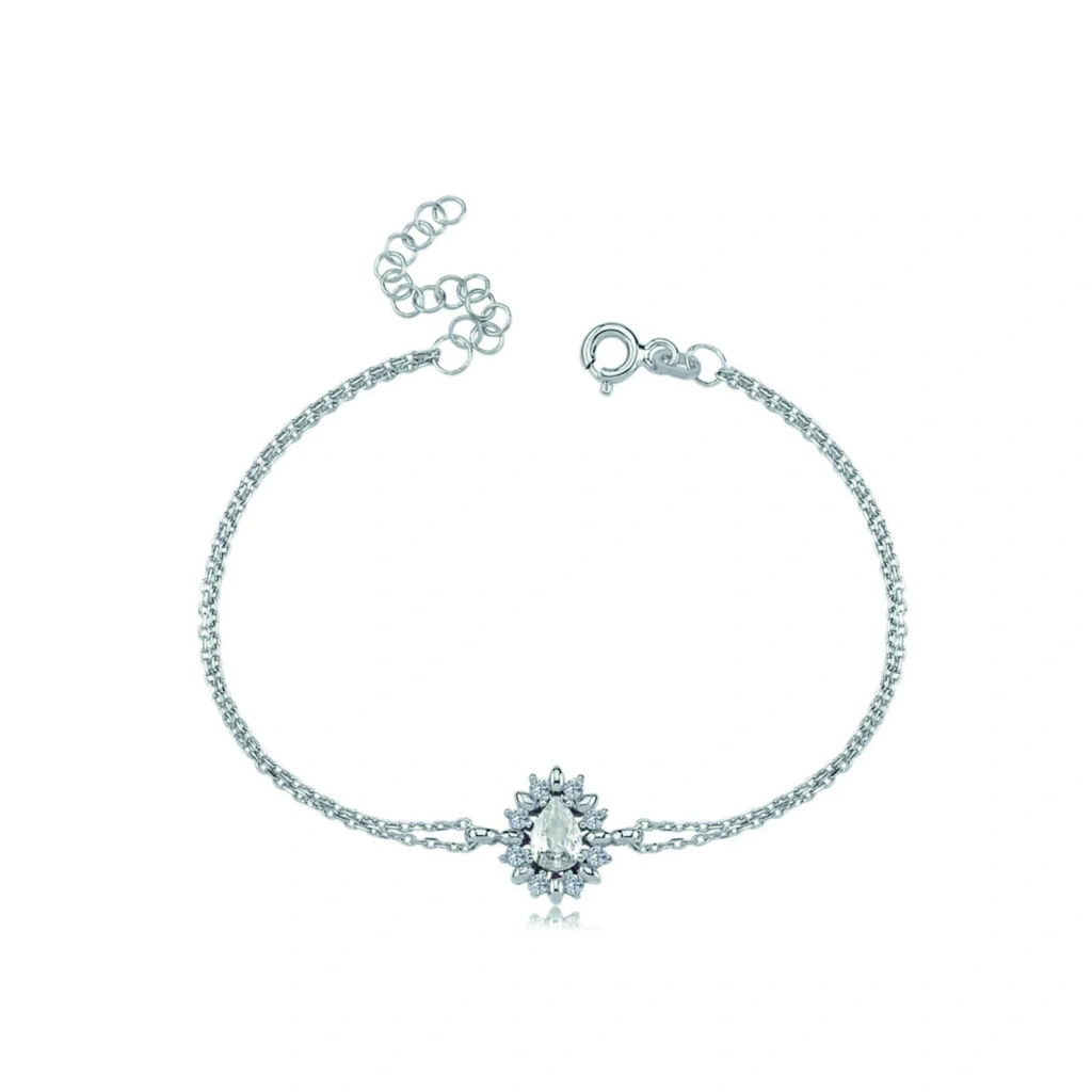 Pırlanta Montür Yağmur Tanesi Işıltılı Gümüş Bileklik - Gümüş