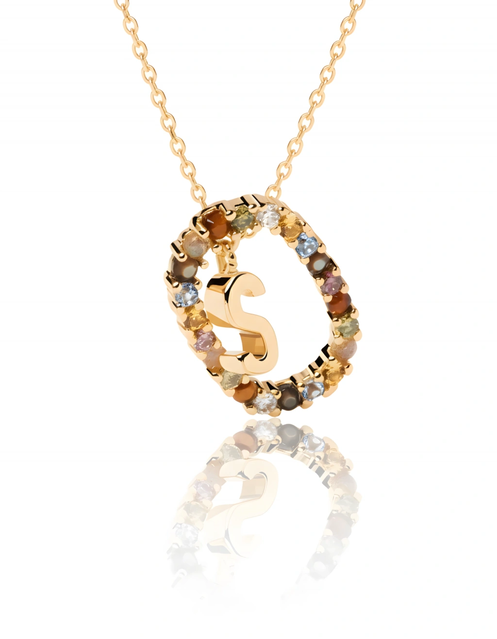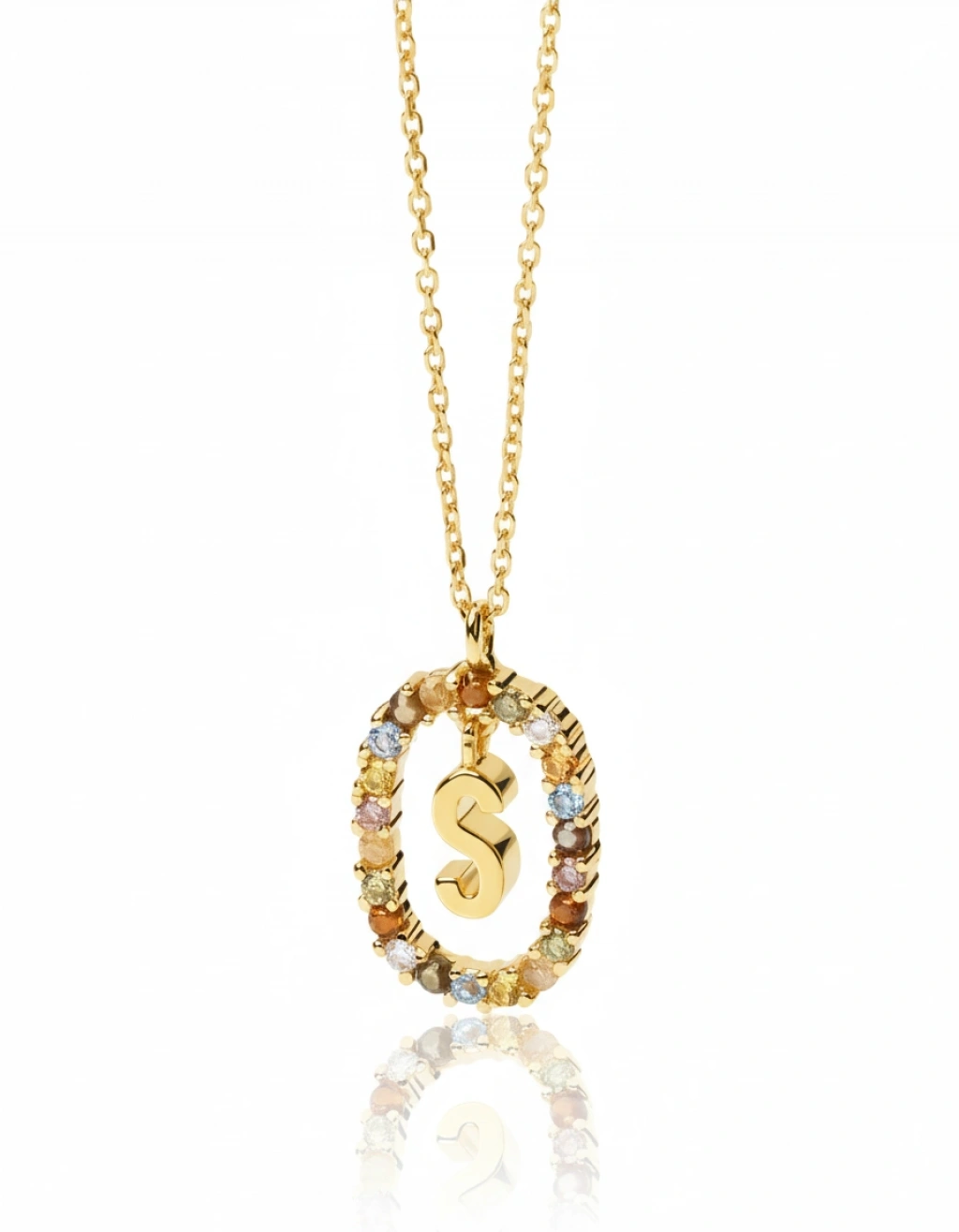? Her Rengiyle Sizin Hikayeniz: Rengarenk Taşlı Oval Harf Gümüş Kolye - Altın Kaplama