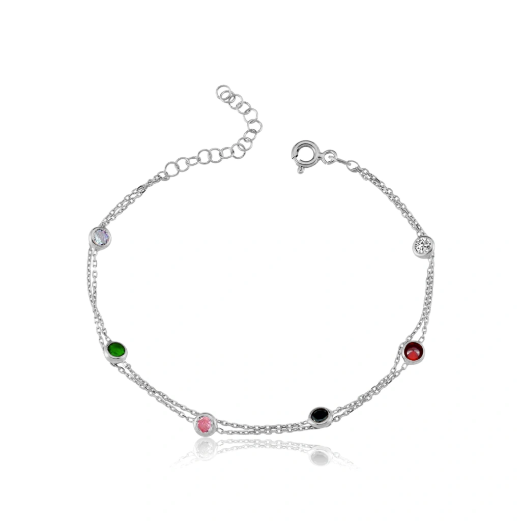 Renkli Tutkular İkili Gümüş Bileklik - Gümüş