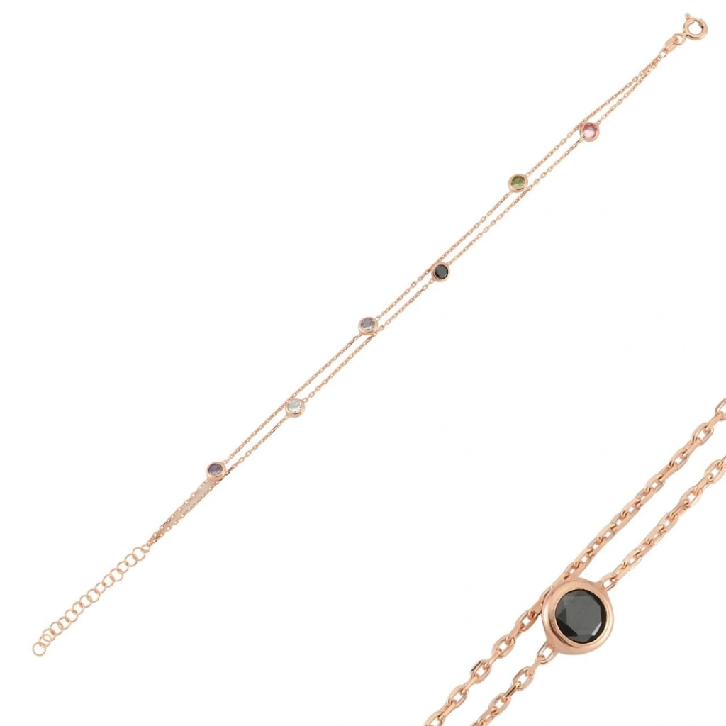 Pırlanta Montür Yağmur Tanesi Işıltılı Gümüş Bileklik - Rose
