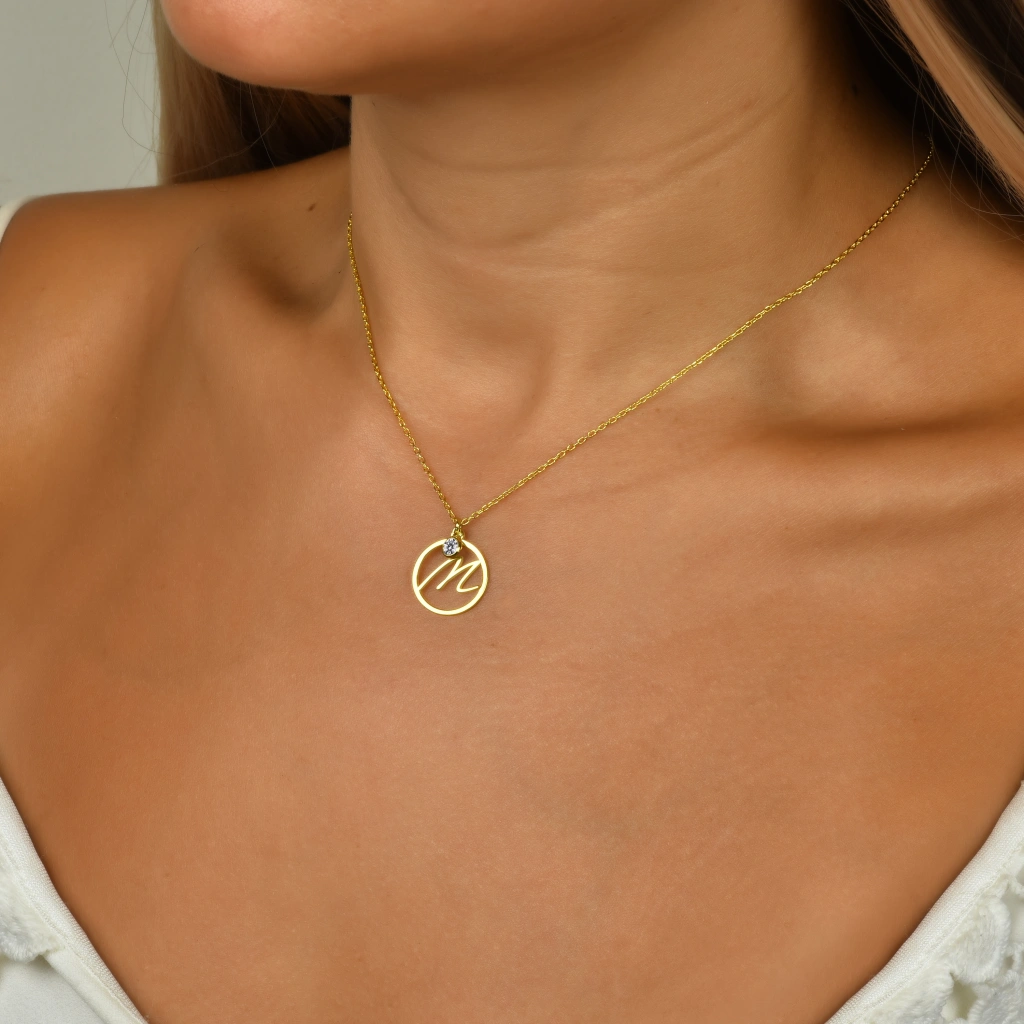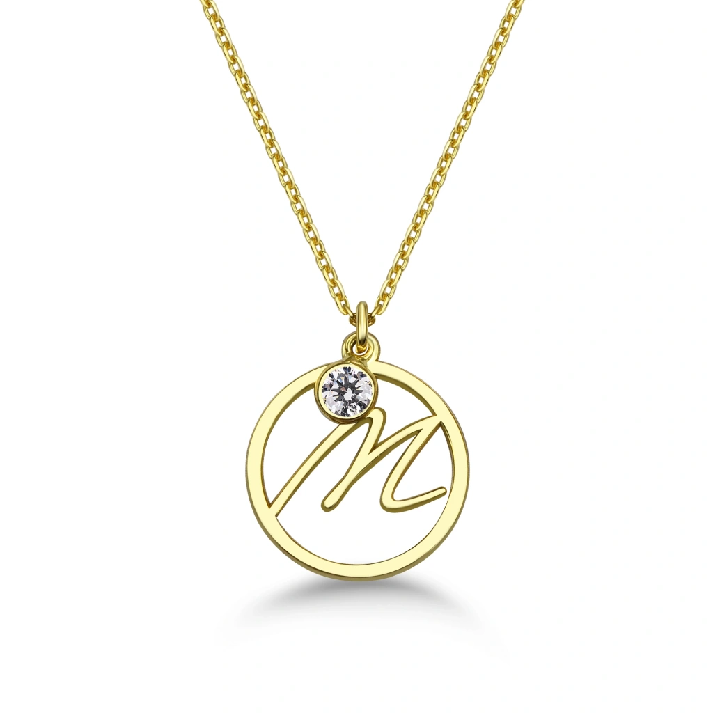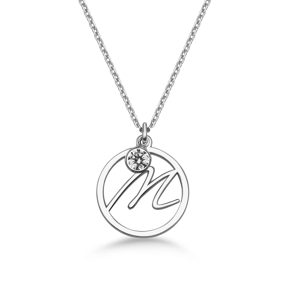 Şıklık ve zarafeti bir arada sunan Mavili Gümüş'ün özel tasarımı Taşlı Çember M Harf Kolye ile tarzınızı tamamlayın.