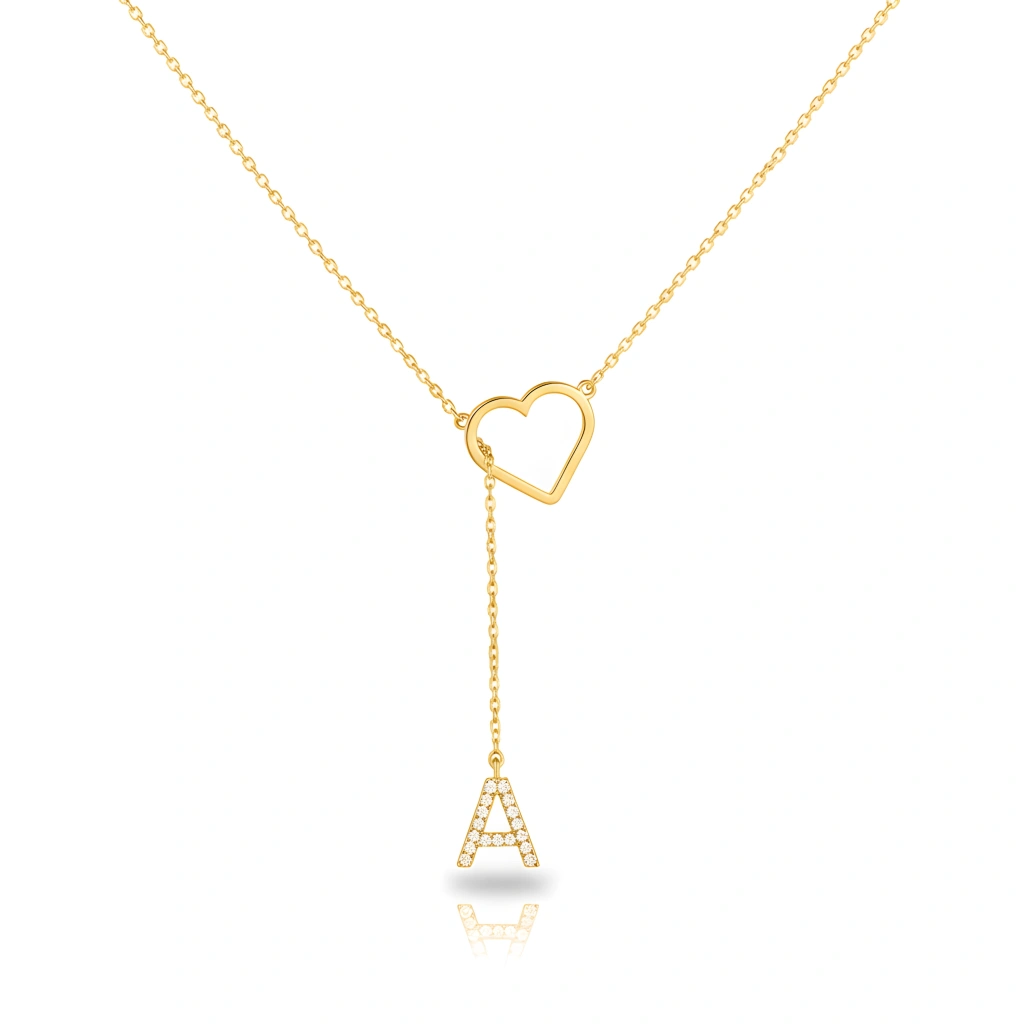 Detaylar: Açık Kalp Formu, Zirkon Taşlı Kişiye Özel Harf Ucu