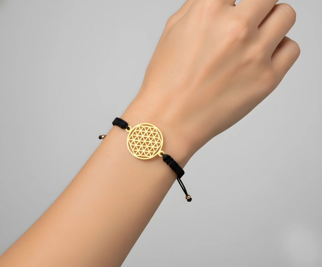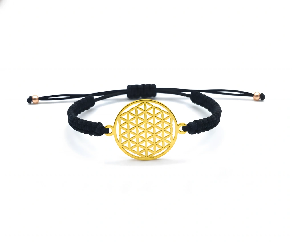 Tüm evrenin ve yaşamın temelini temsil eden, kutsal geometri sembolü "Yaşam Çiçeği" (Flower of Life) figürünü taşıyan bu özel bileklik, hem manevi derinliği hem de modern şıklığı bileğinizde birleştirir.