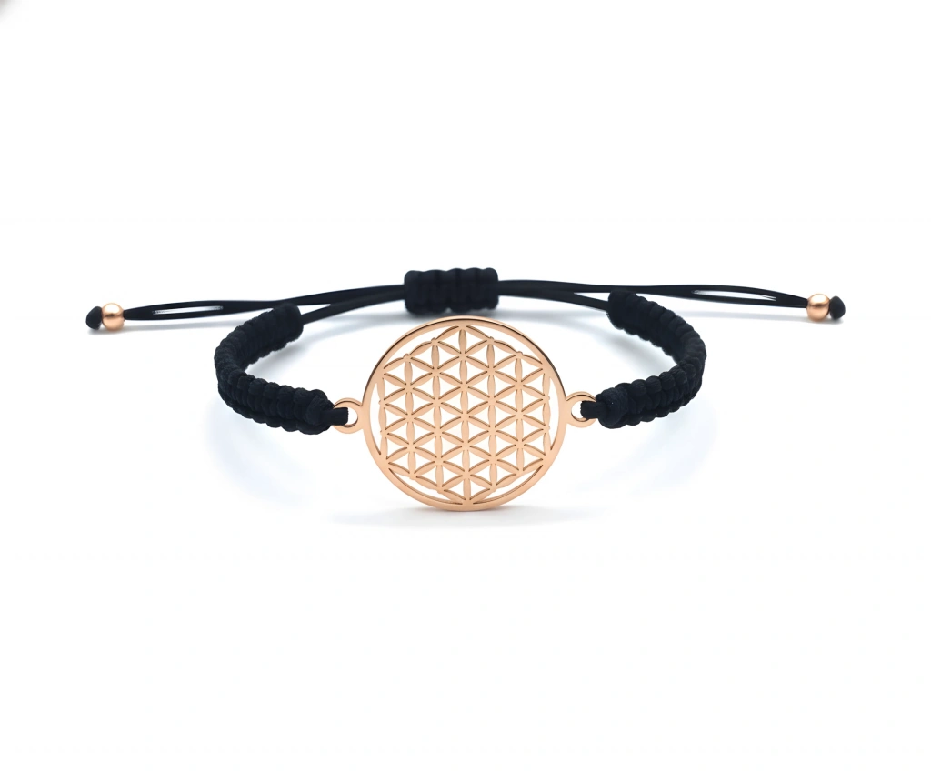 • Modern ve Konforlu Tasarım: Altın rengi (veya gümüş/rose) Yaşam Çiçeği figürü, dayanıklı ve ayarlanabilir siyah makrome ipi ile birleştirilmiştir. Bu sayede bileğinize tam oturur ve günlük kullanımda son derece rahattır.