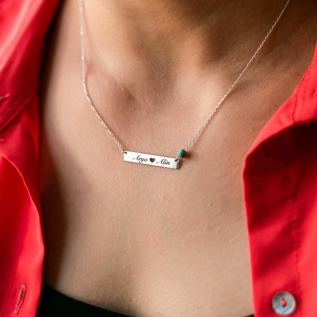 Yatay Çubuk İçi Boş Kalp Kolye - Gümüş