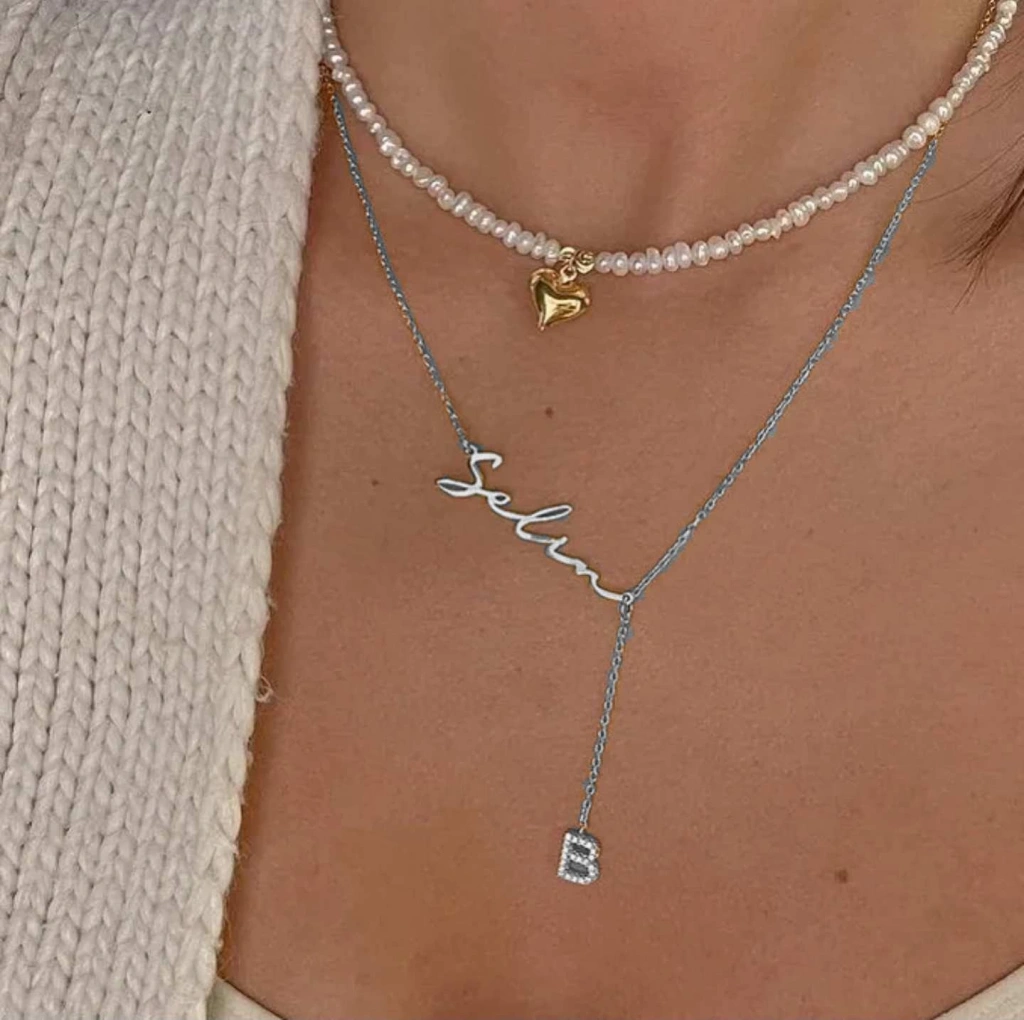 Yeni Taşlı Harf İsimli Gümüş Kolye - Gümüş