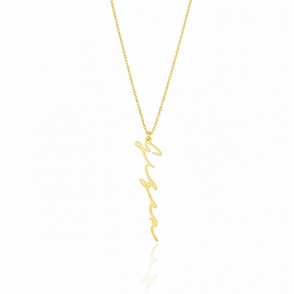 Bu özel dikey imza kolye ile tarzınıza özgün bir imza atın! Kendinizi ifade etmenin en zarif yolunu keşfedin.