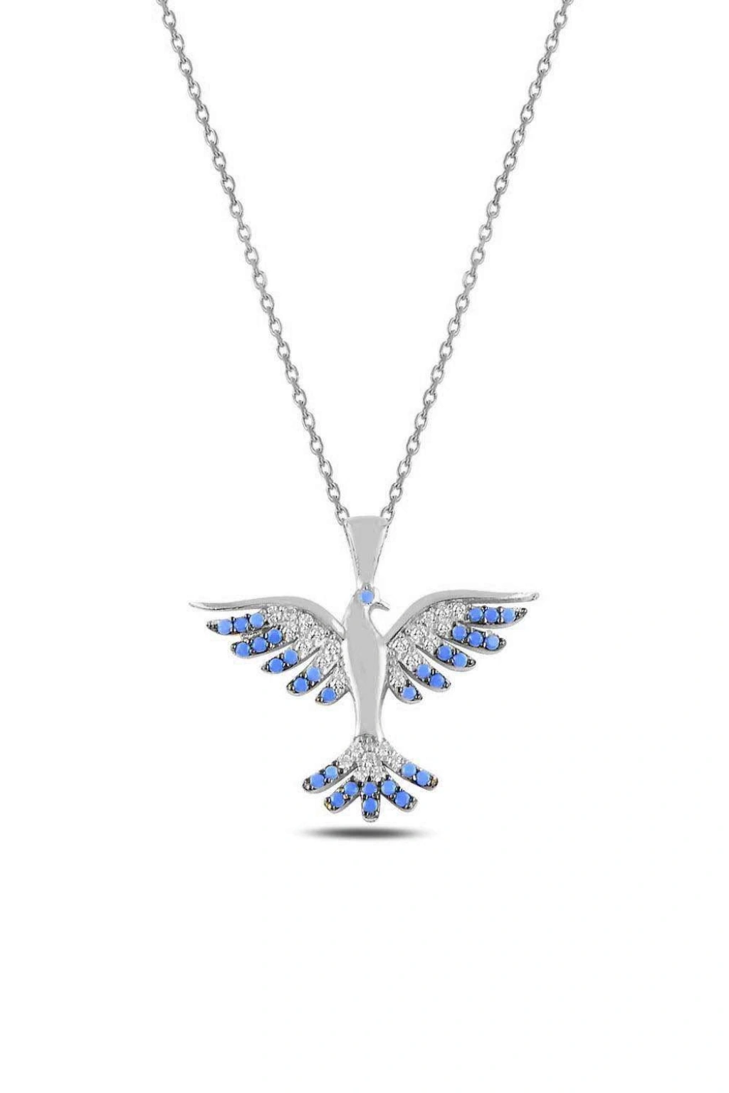 Zümrüdü Anka Kuşu Mavi Taşlı Gümüş Kolye - Gümüş