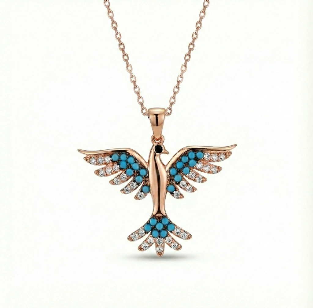Romantizmin ve Zarafetin Simgesi: Roze Kaplama Anka Kuşu Kolye